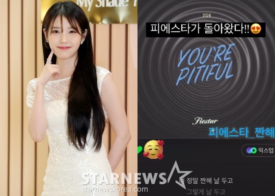 아이유는 1일 자신의 인스타그램에 "피에스타가 돌아왔다"며 컴백을 알렸다. 이와 함께 피에스타의 '짠해' 스트리밍을 인증했다.