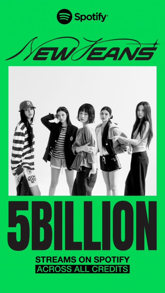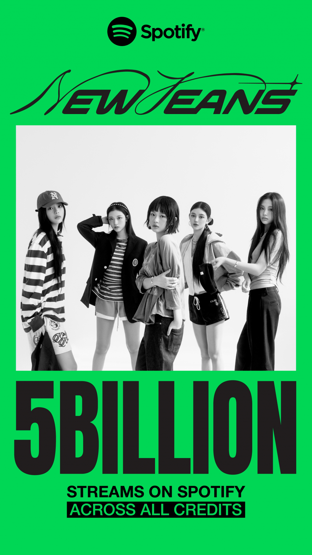 그룹 뉴진스(NewJeans)가 스포티파이에서 합산 누적 스트리밍 50억 회를 돌파했다.