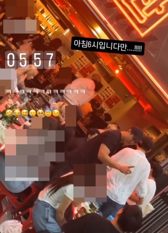 최근 서울 강남의 한 술집 관계자는 SNS 계정에 황재균이 지인들과 있는 사진을 게재했다. 사진 속 황재균은 검은 모자에 검은 반팔티를 입고 지인과 대화하고 있는 모습이었다.
