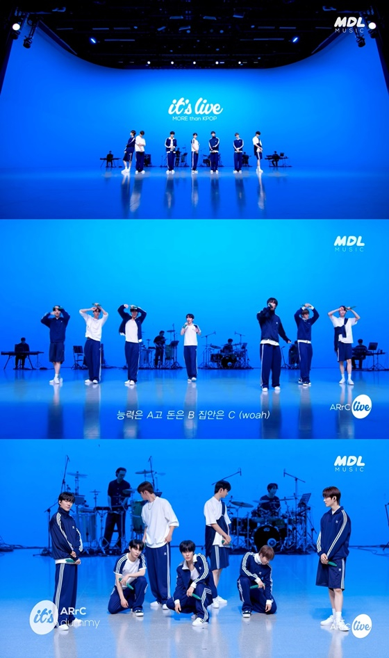 공개된 영상 속 아크는 멤버별 개성을 살린 스포티 룩과 함께 핸드마이크를 들고 등장, 밴드 버전으로 편곡된 'dummy' 무대를 라이브로 소화했다. 일곱 멤버는 묵직한 베이스가 돋보이는 리듬에 맞춰 강렬한 래핑과 보컬을 선보이며 '다이아몬드형 신인'다운 실력을 입증했다. 멤버 간 호흡이 인상적인 화음과 댄스 브레이크 등을 삽입해 보는 재미를 선사했다.