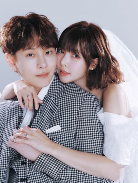 앞서 그들의 웨딩 화보도 공개됐다. 평범한 웨딩드레스가 아닌 흰색의 의상을 맞추는가 하면 검은색 짧은 미니 드레스와 스모키 화장, 망사 스타킹 등을 착용해 놀라움을 자아냈다.
