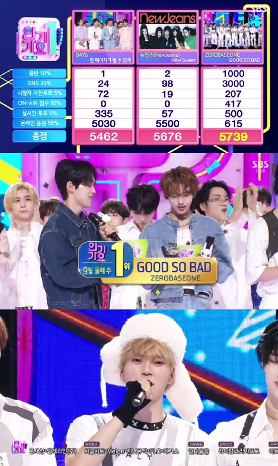 이날 데이식스(Day6) '한 페이지가 될 수 있게', 뉴진스(NewJeans) '하우 스윗(How Sweet)', 제로베이스원(ZEROBASEONE) '굿 소 배드(GOOD SO BAD)'가 1위 후보에 올랐다.