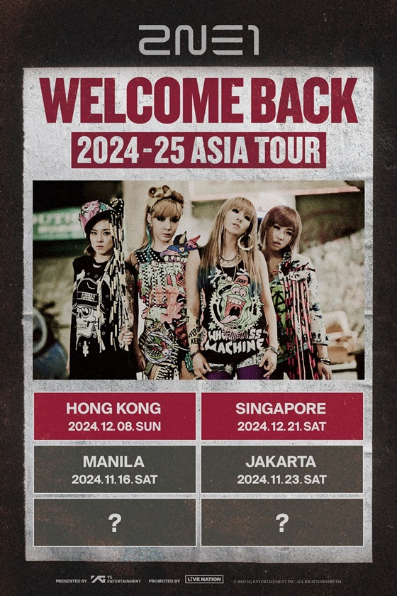 10일 YG엔터테인먼트에 따르면 2NE1은 총 2개 도시서 데뷔 15주년 콘서트 투어 '2024-25 2NE1 ASIA TOUR 'WELCOME BACK''을 추가 개최한다. 오는 12월 8일 홍콩, 12월 21일 싱가포르로 발걸음을 옮겨 보다 더 많은 팬들과 교감할 계획이다.