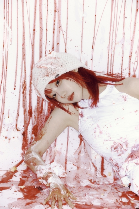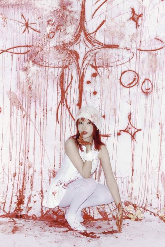 또 다른 사진에는 마젠타가 붉은 잼으로 범벅이 된 공간에서 등장한다. 무심하게 카메라를 바라보는 마젠타의 표정에서 과연 QWER이 새 앨범을 통해 어떤 이야기를 전할지 궁금증이 고조된다.