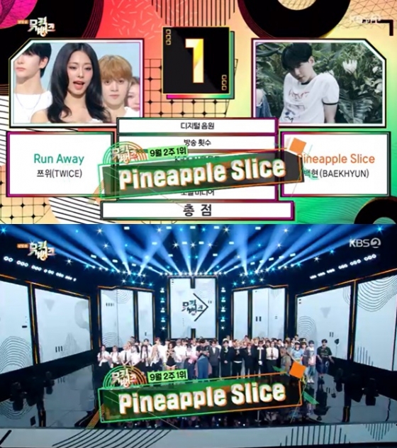 이날 쯔위 'Run Away'가 1위를 차지했다. 쯔위는 1위 후보로 백현 'Pineapple Slice'와 대결했다.