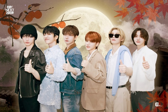 보이넥스트도어는 추석 당일인 17일 정오 팀 공식 SNS를 통해 'MZ력' 넘치는 명절 인사 사진을 게재했다. 멤버들은 커다란 보름달, 감나무, 단풍으로 꾸며진 전통적인 배경 앞에서 재기발랄한 포즈를 취해 유쾌한 분위기를 풍긴다.