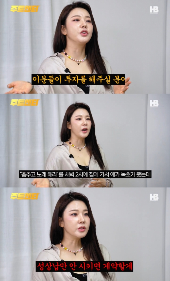 이어 "당시 사장님이 가라오케를 투잡으로 하고 있었다. 새벽마다 노래하라고 하더라. 투자해주실 분들이라고 하더라. 춤추고 노래하느라 녹초가 됐는데 새벽 2시, 3시에 노래하라는 거다"라고 얘기했다.