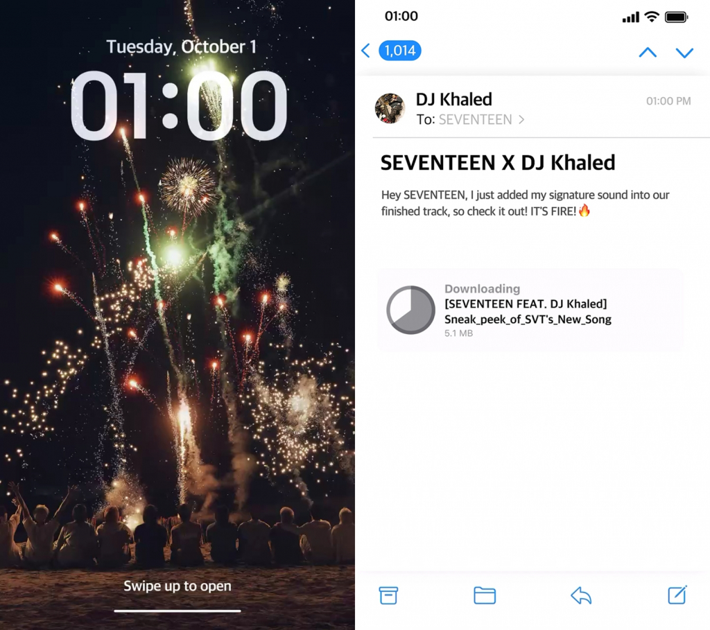 세븐틴은 1일 공식 SNS에 "DJ Khaled just sent a message - sneak peek alert!(DJ 칼리드가 메시지를 보냈습니다 - 예고 알림!)"이란 문구와 함께 영상 한 편을 게재했다.