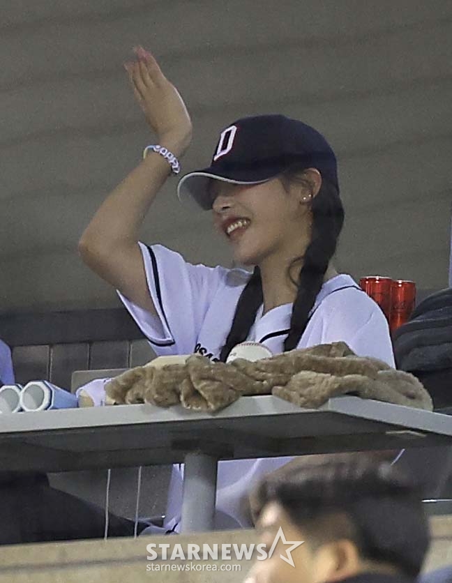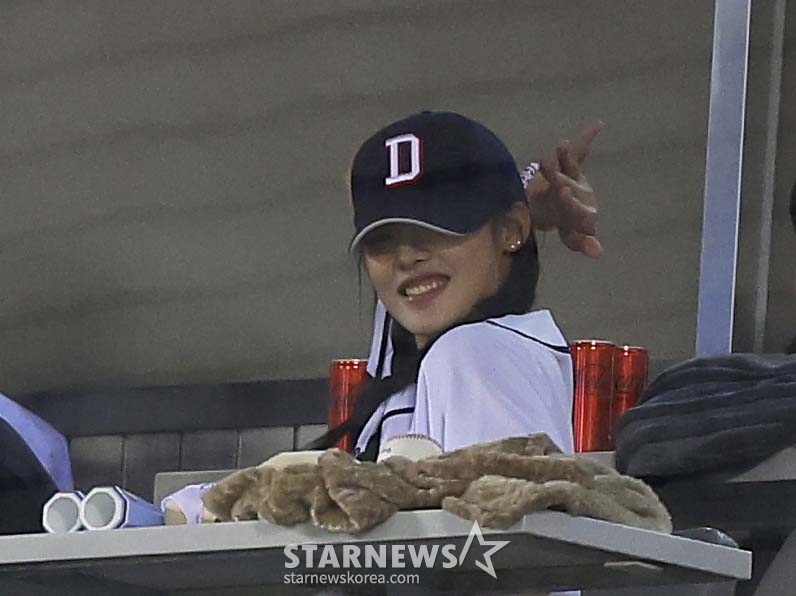 이날 민지는 두산 베어스 유니폼에 반바지, 니삭스를 매치해 스포티한 패션을 선보였다. 특히 작은 얼굴 탓에 모자에 잡아먹힌 듯한 비주얼로 화제를 모았다.