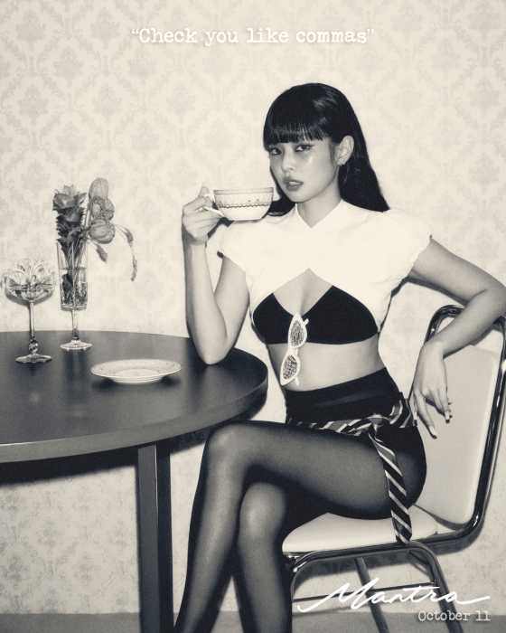 제니는 다양한 콘셉트를 자신만의 분위기로 소화하며 독보적인 아우라를 발산했다. 특히 콘셉트 포토 속에는 각각 "This that pretty girl mantra", "Check you like commas", "She's that stunna"라는 문구가 적혀 있어 궁금증을 자아내며 신곡 'Mantra'에 대한 기대감을 높였다.