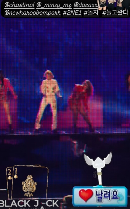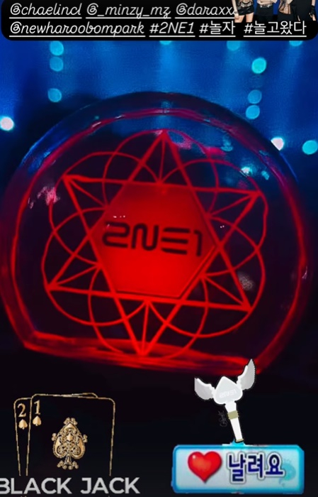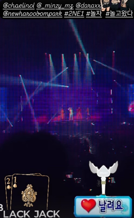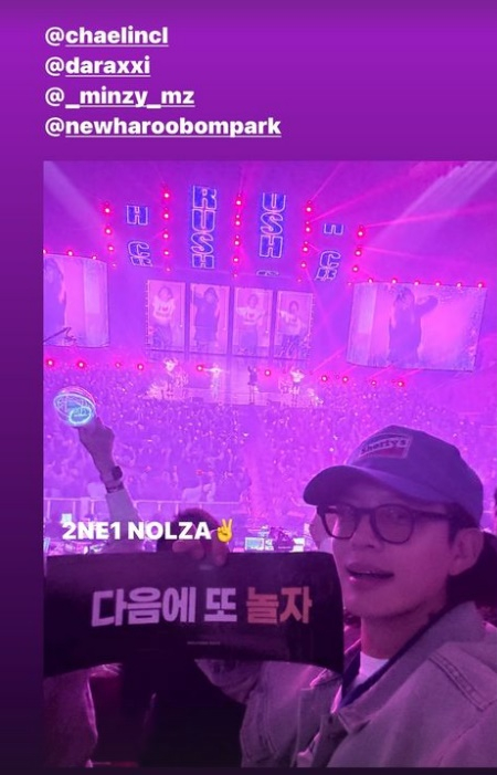 같은 날 세븐도 자신의 계정에 "2NE1 NOLZA"란 문구와 함께 2NE1 공연을 직관한 모습의 사진을 공개했다.