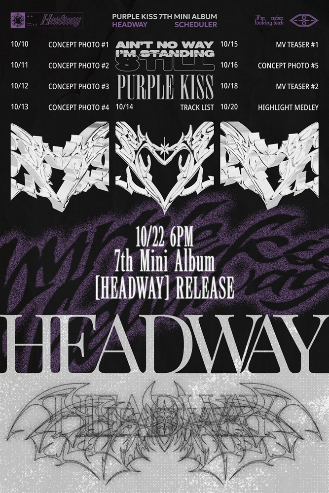 퍼플키스(나고은, 도시, 이레, 유키, 채인, 수안)는 8일 0시 공식 SNS에 미니 7집 'HEADWAY(헤드웨이)'의 스케줄러를 올렸다.