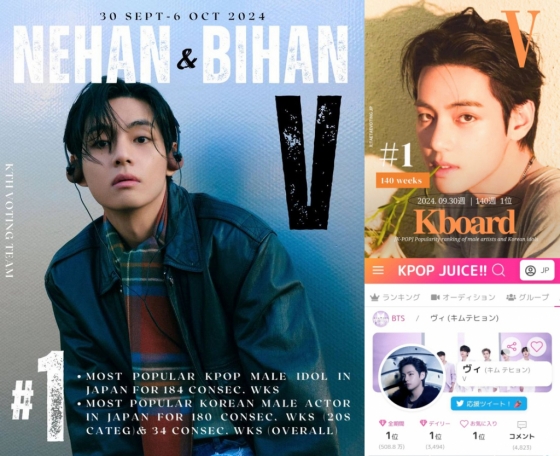 방탄소년단(BTS) 뷔가 일본의 주요 인기랭킹 투표에서 1위를 싹쓸이하며 '태태랜드' 인기를 입증했다.
