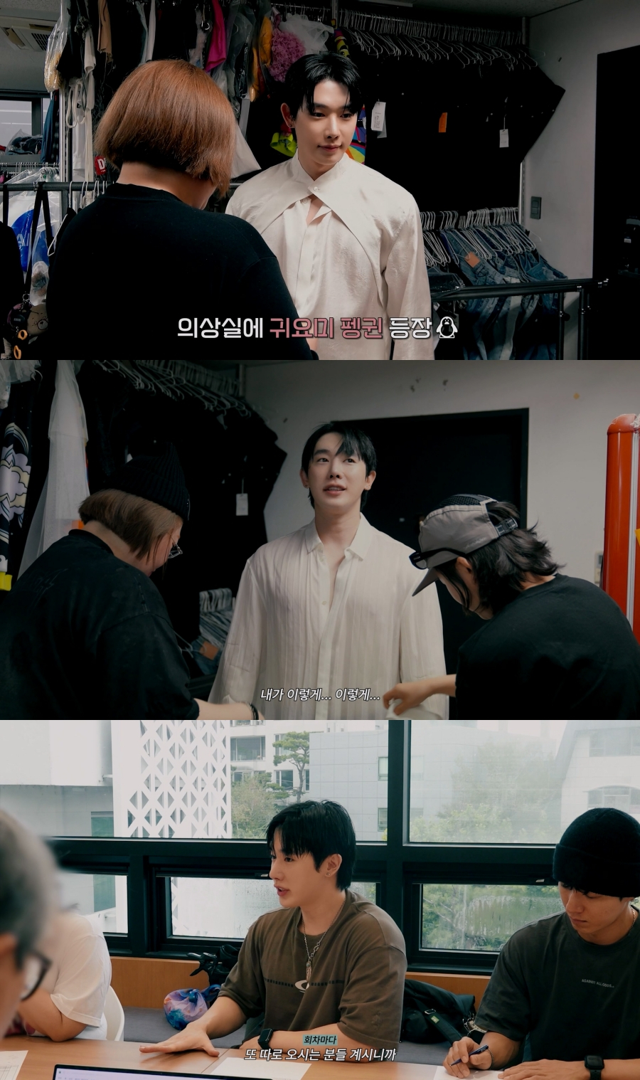 영상은 팬파티 포스터 촬영 의상을 피팅하는 원호의 모습과 함께 시작됐다. 짙은 흑발에 흰 셔츠를 입고 귀공자 같은 고급스러운 매력을 뽐낸 원호는 구두까지 신어본 뒤 "이런 걸 안 신은 지 2년이 넘어 엄청 어색하다. 맨날 슬리퍼랑 운동화만 신었다"라며 쑥스러운 듯 웃었다.