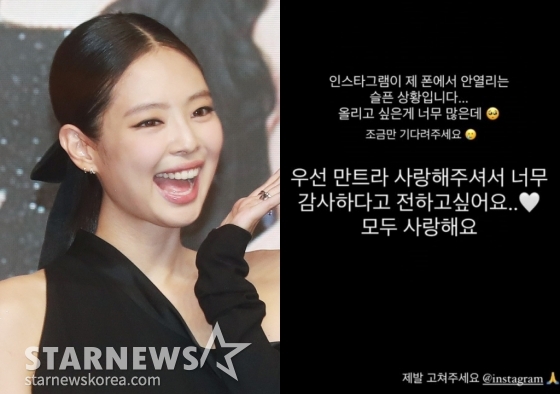지난 12일 제니는 개인 SNS에 "인스타그램이 제 폰에서 안 열리는 슬픈 상황입니다. 올리고 싶은 게 너무 많은데 조금만 기다려주세요"라며 눈물을 흘리고 있는 이모티콘을 게재했다.