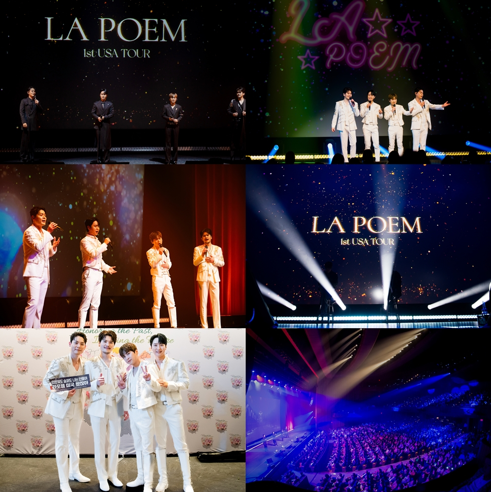 라포엠(박기훈, 유채훈, 정민성, 최성훈)은 지난 12일(이하 현지시간) 미국 로스앤젤레스에서 '미주 중앙일보 창간 50주년 기념 LA 콘서트'를 개최하고 미국 투어 'LA POEM 2024 USA TOUR'의 대미를 장식했다.