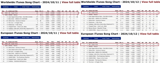 '슈퍼참치' 완곡 버전은 또한 일본 오리콘 '데일리 디지털 싱글 랭킹'(10월 11일 자)에서도 곧바로 1위를 차지, 세계 곳곳에서 1위를 휩쓸었다.