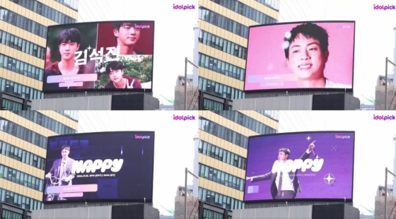 진은 지난 2주 간(9월 30일~10월 13일) 총 19만 198픽을 얻어 위클리 전체 1위를 기록하며 138회차 전광판 리워드를 획득했다. 해당 광고는 서울 중구 롯데에비뉴엘 맞은 편 초대형 전광판에 10월 21일부터 송출되어 10월 23일까지 만나볼 수 있다.
