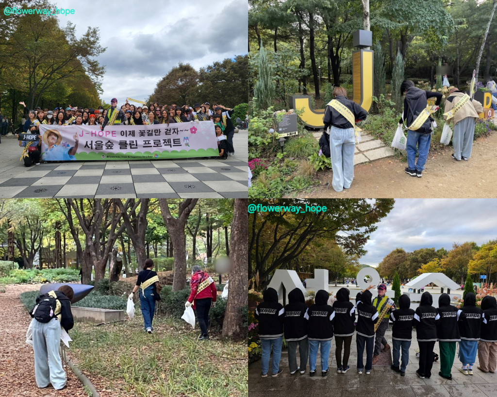 19일 제이홉의 한국 팬클럽 '정호석 꽃길 조성단'과 일본 팬클럽 'Supporters for j-hope'은 공동으로 서울 성동구 서울숲 일대를 청소하는 '서울숲 클린 프로젝트'를 진행했다.