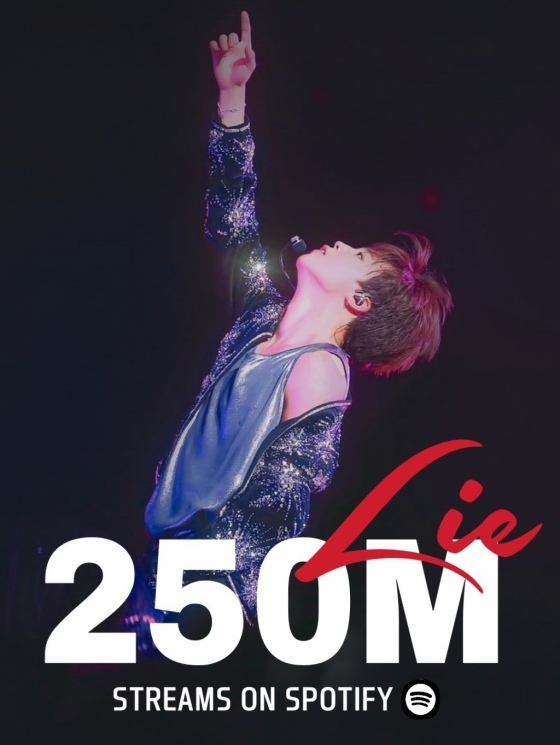 지민의 솔로곡 '라이'는 지난 10월 10일 기준 스포티파이에서 2억 5000만 스트리밍을 돌파했다.