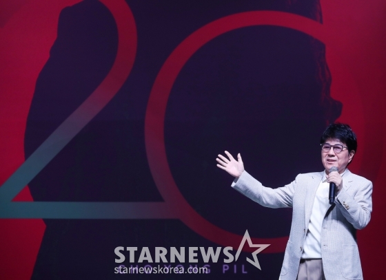 가수 조용필이 22일 오후 서울 용산구 블루스퀘어에서 진행된 정규 20집 '20' 발매기념 기자간담회에 참석해 인사말을 하고 있다.