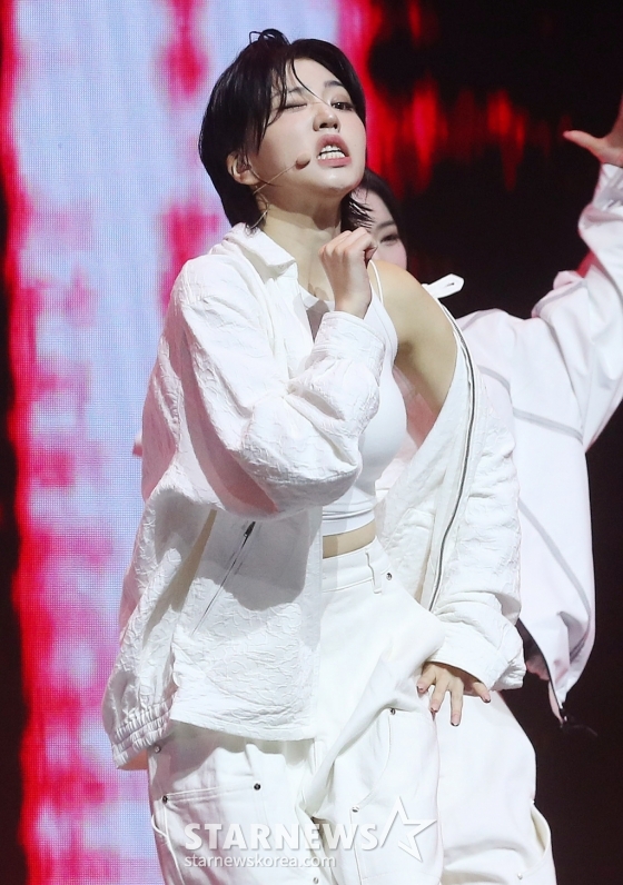 걸그룹 트리플에스 Vision@ry Vision(이하 VV) 박소현이 23일 오후 서울 광진구 예스24 라이브홀에서 진행된 첫 앨범 'Performante' 발매 기념 쇼케이스에 참석해 멋진 무대를 선보이고 있다.