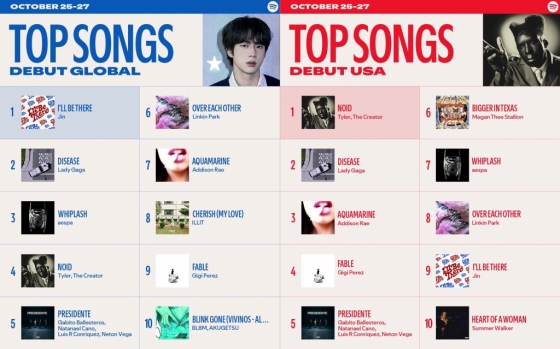 진의 'I'll Be There'는 10월 25일부터 27일까지 스포티파이 톱 송 데뷔 글로벌 차트에서 1위에 오르며 독보적인 인기를 입증했다. 같은 기간 톱 송 데뷔 글로벌 미국 차트에서는 9위를 차지했다.