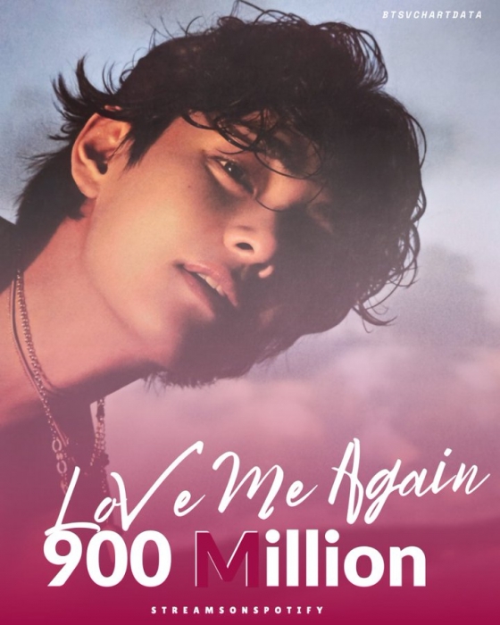 뷔의 솔로 앨범 '레이오버'(Layover) 선 공개곡 '러브 미 어게인'은 최근 세계 최대 스트리밍 플랫폼인 스포티파이에서 9억 스트리밍을 돌파했다.