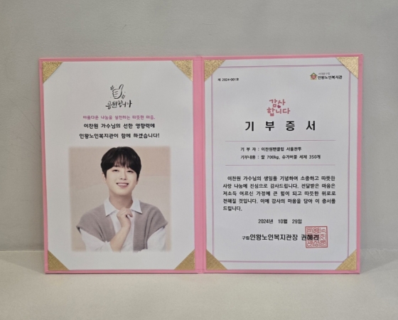 이어 "앞으로도 이웃사랑 실천에 적극 참여하는 이찬원 찬스가 되고싶다"며 "저소득 어르신들을 위한 따뜻한 나눔 후원에 동참 할 수 있어 행복하다"고 전했다.