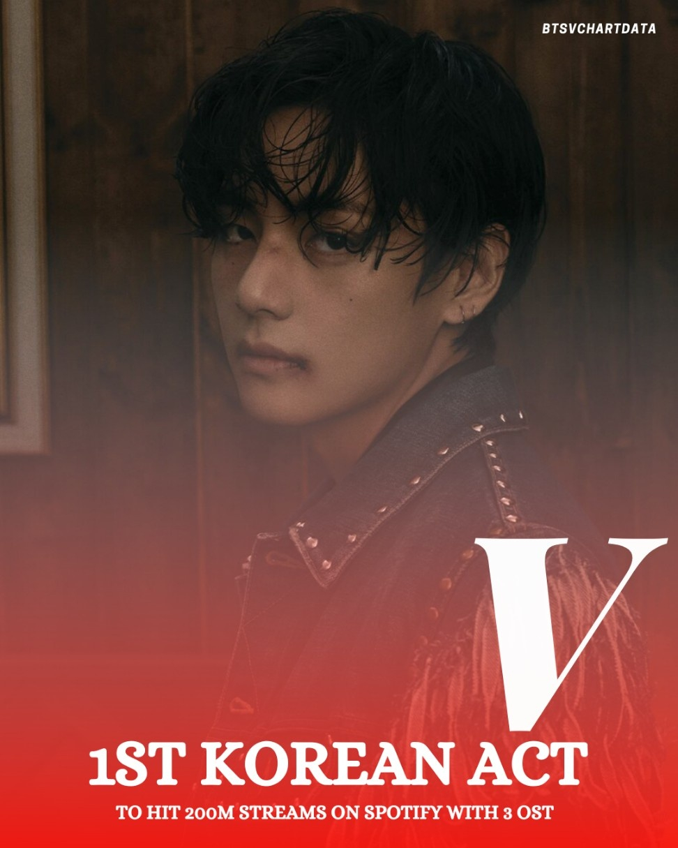 방탄소년단(BTS) 뷔가 참여한 드라마 OST 3곡이 스포티파이에서 2억 스트리밍을 돌파하면서 'K-OST 킹' 면모를 빛냈다.