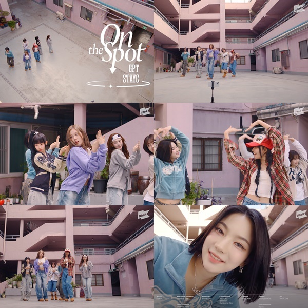 스테이씨는 이날 공개되는 '온더스팟'에서 지금까지와는 차별화된 퍼포먼스로 국내를 넘어 글로벌 K팝 팬들의 심장을 저격할 예정. 멤버들은 핑크빛 아파트를 배경으로, 무대 의상이 아닌 데님과 스포츠 유니폼, 후드 집업 등 캐주얼한 일상복 차림으로 등장해 발랄하고 귀여운 퍼포먼스를 선보인다. 마치 이웃집 소녀들이 아파트 안뜰에 모여 함께 춤추는 듯한 모습으로 상큼하고 친근한 매력을 발산하는 것.