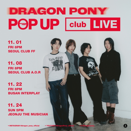 한편, 드래곤포니는 1일 서울 마포구 CLUB FF에 이어 8일 서울 CLUB A.O.R, 22일 부산 인터플레이, 24일 전주 더 뮤지션에서 차례로 클럽 투어를 연다.