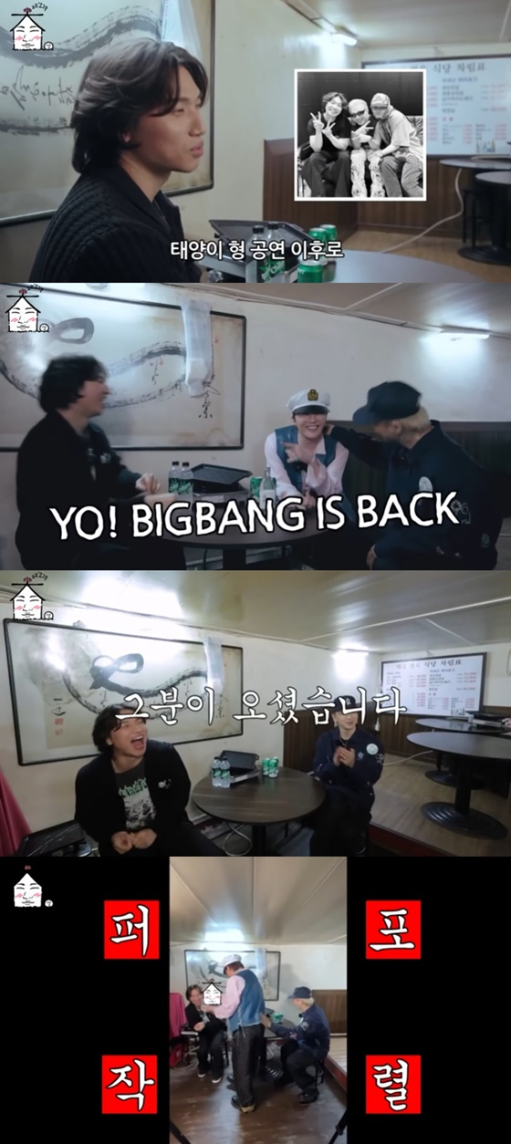 이날 대성은 "태양이 형 공연 이후로 처음으로 뭉친다. 너무 기대된다"고 밝혔다. 포옹을 나누며 태양을 반갑게 맞이한 대성은 지드래곤의 등장에 크게 환호했다.