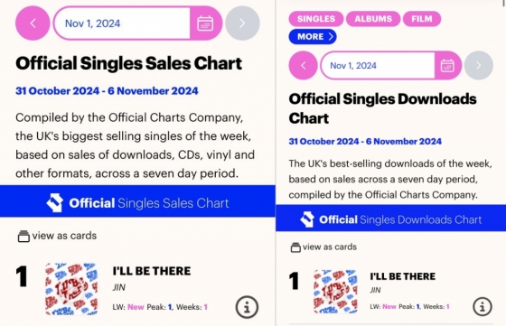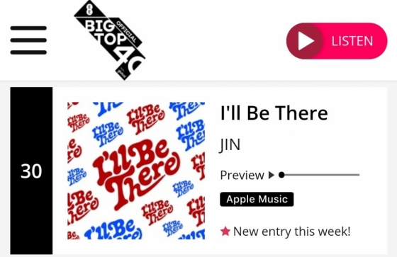 방탄소년단(BTS) 진의 신곡 'I'll Be There'(아일 비 데어)가 영국과 미국에서도 뜨거운 인기를 보이고 있다.