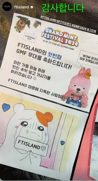 이재진은 지난 2일 자신의 계정에 이날 서울 송파구 올림픽공원에서 진행한 '그랜드 민트 페스티벌 2024'(이하 그민페) FT아일랜드 무대 모습을 게재했다.