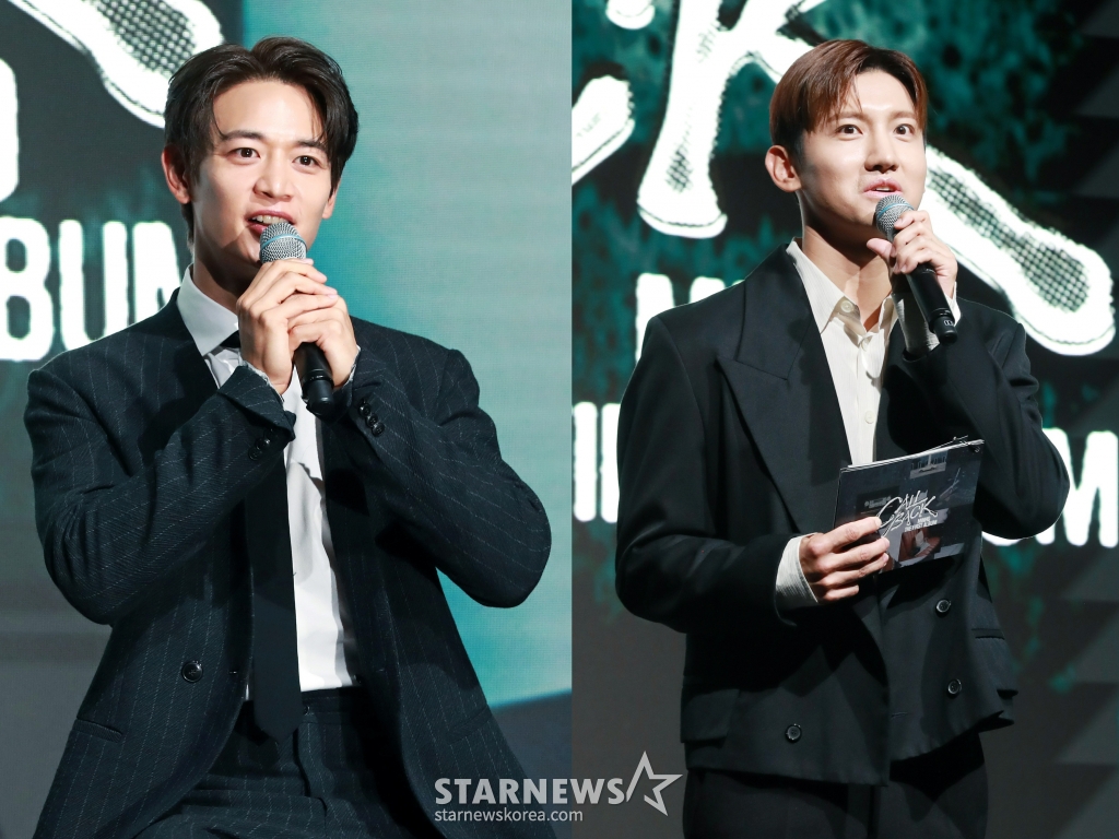 이어 민호는 최강창민이 MC로 지원사격을 해준 사실에 감사함을 드러냈다. 그는 "오늘 긴장되고 떨릴 수 있는데 나의 창민이 형이 옆에 있어서 너무 감사하다. 우리는 평소에도 많이 보는 사인데 옆에 있어서 든든하다. 지금 일본 투어 중인 걸로 알고 있는데 나를 위해서 멀리서부터 달려와줘서 감사의 말씀을 드리고 싶다"라며 최강창민을 향해 무한 애정을 드러냈다. 실제로 최강창민은 민호의 기자간담회 진행을 위해 지난 3일 입국했다고.