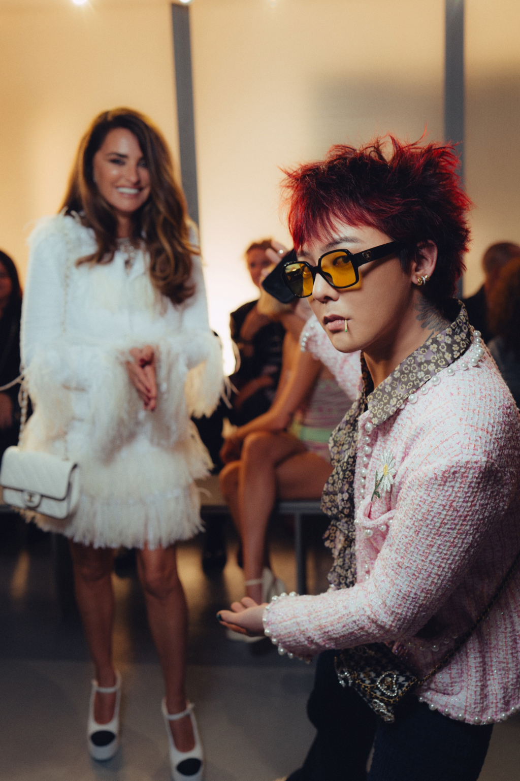 공개된 사진 속 지드래곤은 배우 페넬로페 크루즈와 함께했으며, 지드래곤 특유의 도도하고 시크한 모습이 눈길을 끈다.