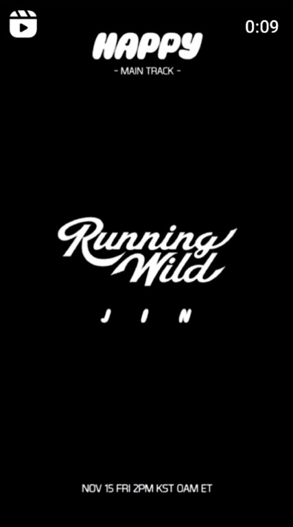 진은 이 영상의 뒷부분에도 신곡 'Running Wild'의 아름다운 멜로디를 살짝 공개하며 며칠 앞으로 다가온 솔로 앨범 'Happy'와 타이틀곡 발표에 대한 큰 설렘을 드러냈다.