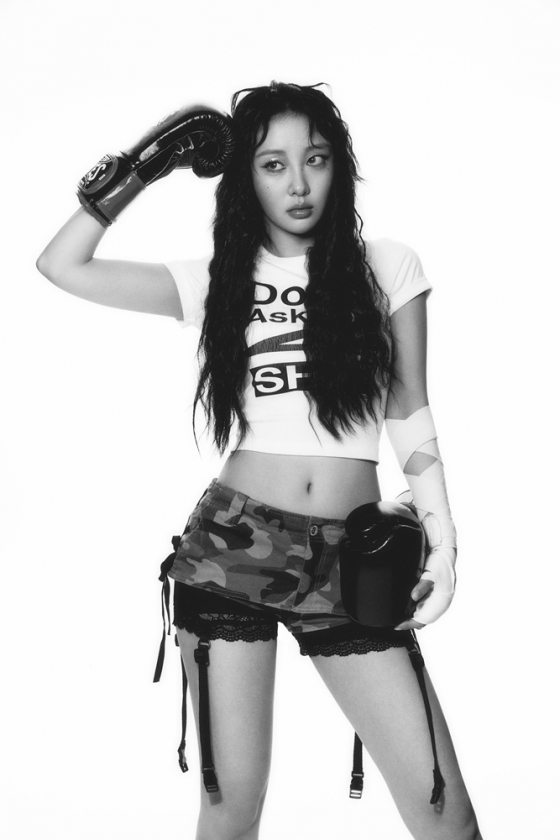 공개된 사진 속 이브는 히피펌으로 등장해 눈길을 끈다. 복서로 변신한 이브는 글러브를 착용한 채 스포티한 매력을 뽐냈다.