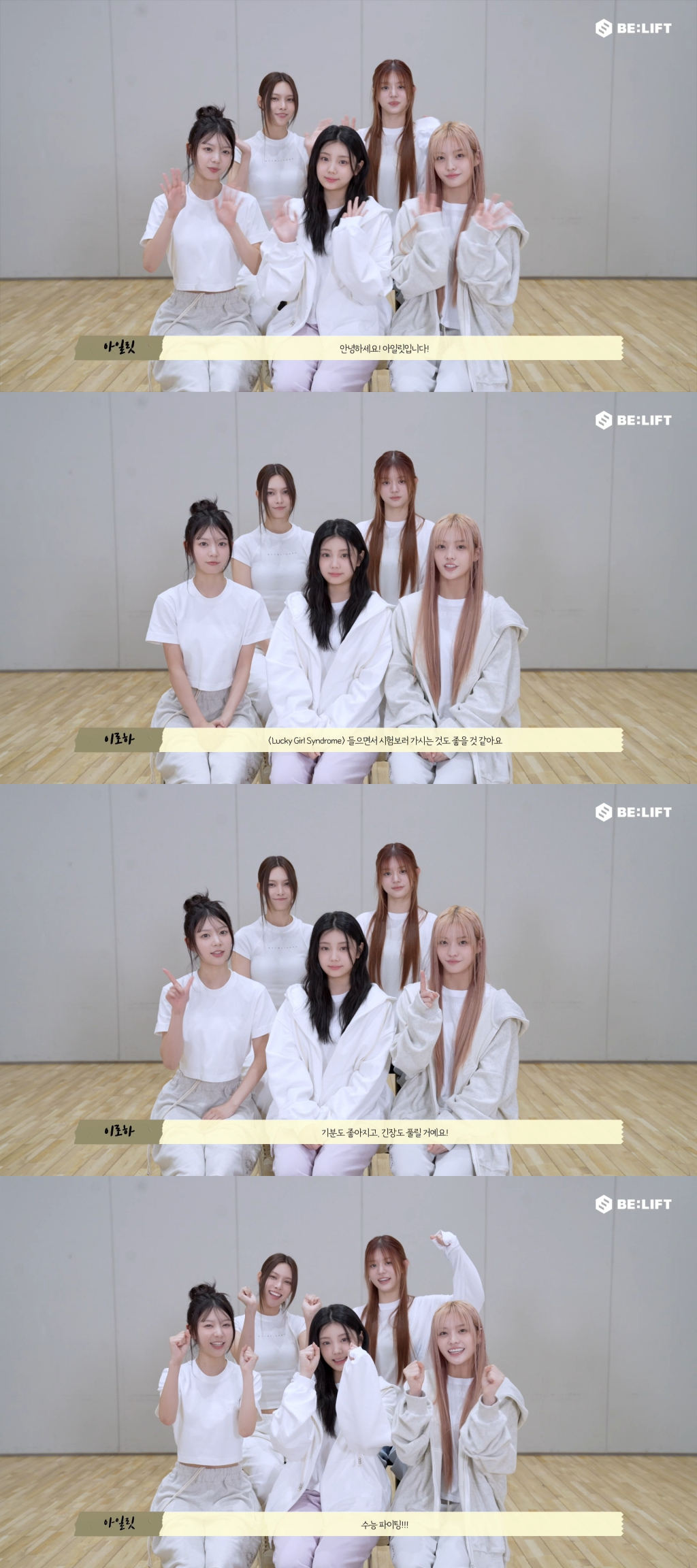 아일릿은 "'Lucky Girl Syndrome'을 들으면서 시험 보러 가는 것도 좋을 거 같다. 기분도 좋아지고, 긴장도 풀릴 것"이라며 센스 있게 사기를 북돋웠다. 아일릿은 수험생을 위한 응원의 박수와 함께 힘차게 파이팅을 외쳤다.