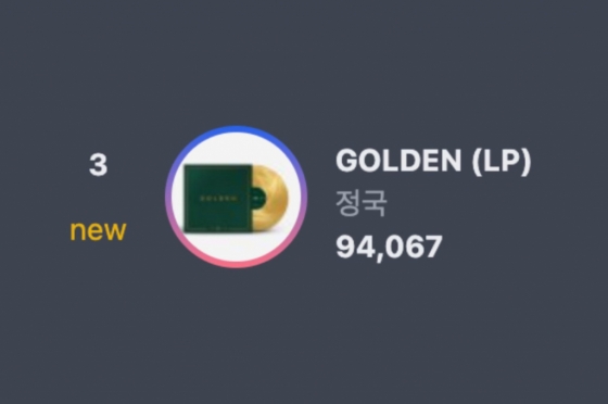 한국음악콘텐츠협회(KMCA)가 운영하는 음반 판매량 집계 사이트 써클차트(구 가온차트)의 써클 앨범 차트(Circle Album Chart)에 따르면, 정국의 솔로 앨범 'GOLDEN' LP는 3위로 첫 데뷔했다.