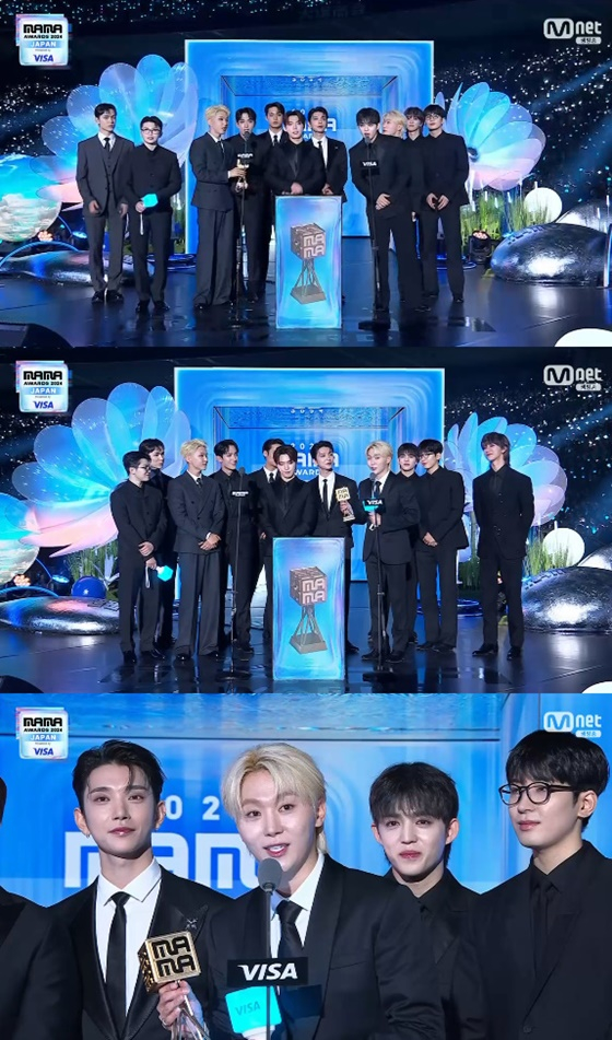 무대에 오른 세븐틴은 "설레는 마음으로 '마마어워즈'에 왔는데 시작부터 이렇게 기분 좋은 상 받을 수 있어서 기쁘다"는 수상 소감을 밝혔다.