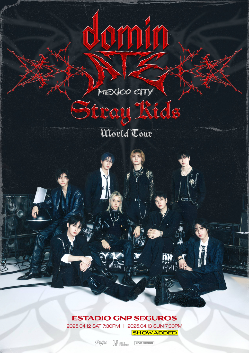 스트레이 키즈는 2025년 4월 12일(이하 현지시간) 멕시코 멕시코시티 에스타디오 GNP 세구로스에서 월드투어 'Stray Kids World Tour '(<도미네이트>) 일환 단독 콘서트를 갖는데, 티켓은 11월 21일 예매 오픈 후 전석 솔드아웃됐다. 이에 JYP엔터테인먼트는 2025년 4월 13일 공연을 추가하고 현지 팬들의 열띤 성원에 화답했다.