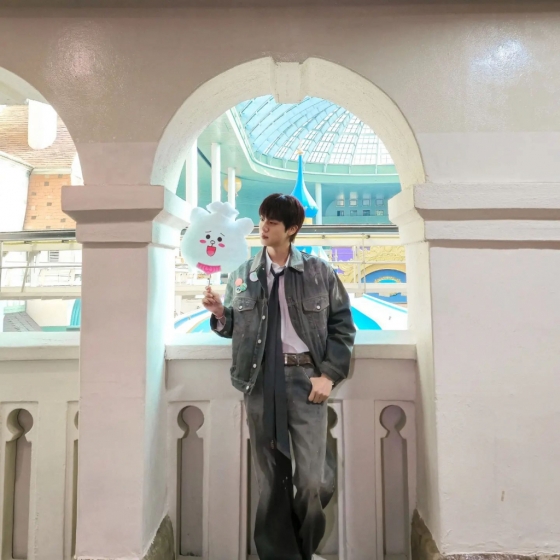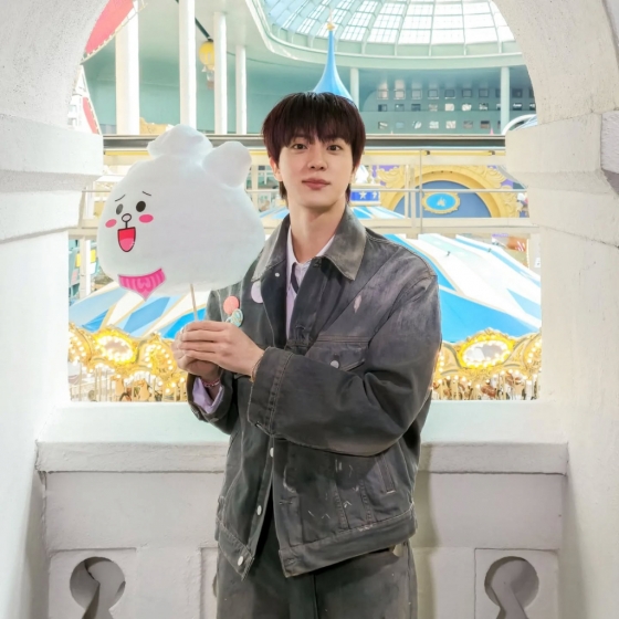 사진 속 진은 서울 잠실에 위치한 한 놀이공원에서 솜사탕을 들고 해맑게 웃고 있는 모습. 태평양처럼 떡 벌어진 어깨와 우월한 비율로 청청 패션을 완벽 소화한 진은 소멸 직전의 소두를 뽐내며 글로벌 여심을 저격했다.