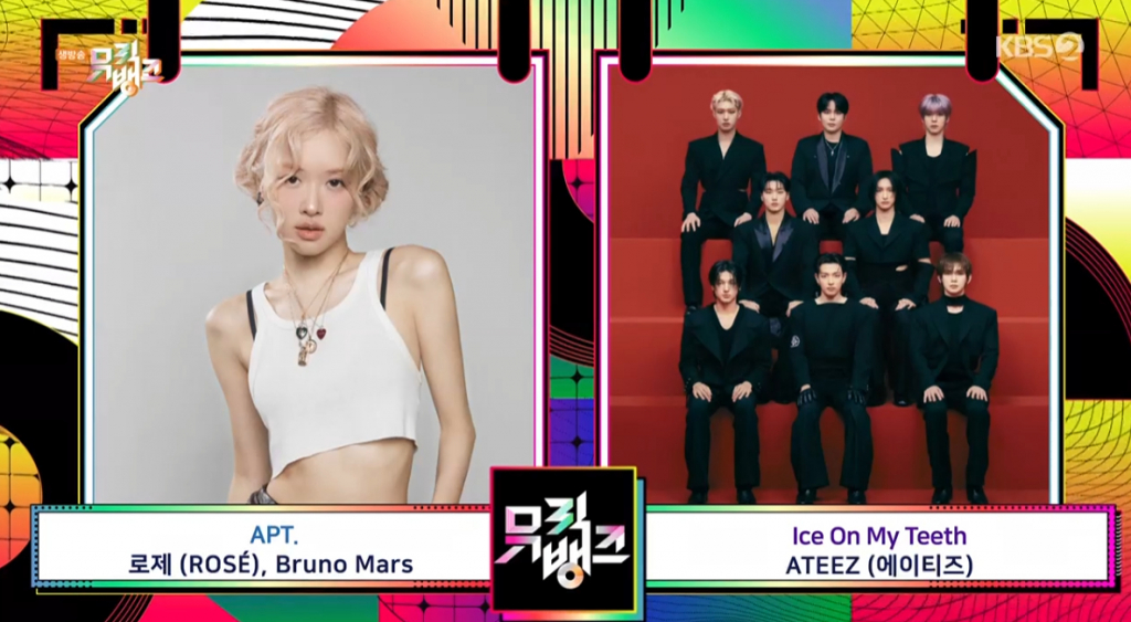 로제와 에이티즈가 '뮤직뱅크' 1위 후보에 올랐다.
