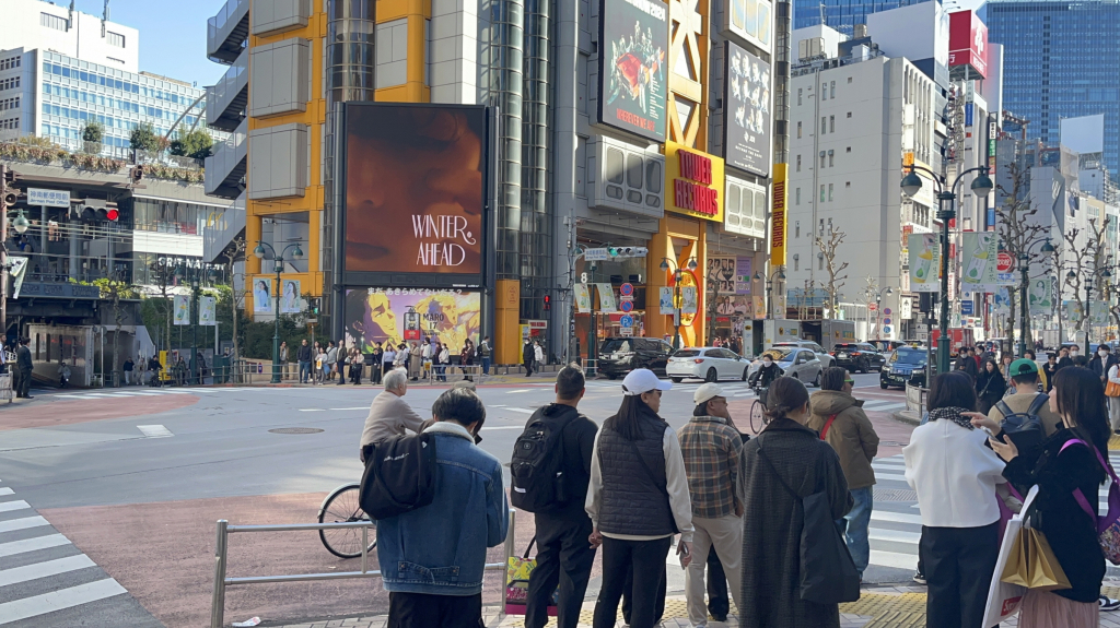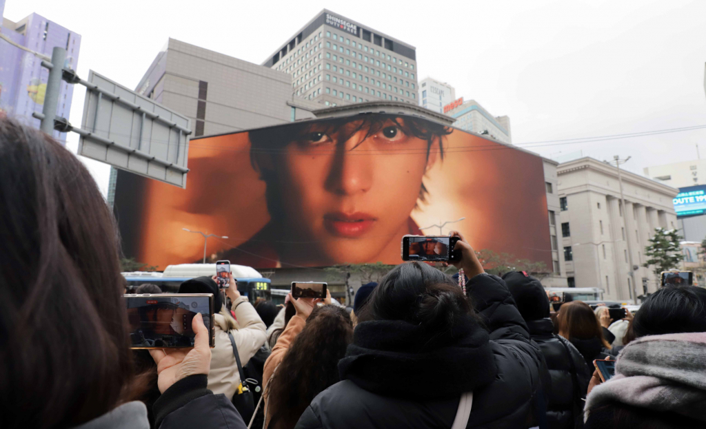 방탄소년단 뷔의 신곡 'Winter Ahead'(with PARK HYO SHIN)가 전 세계 주요 도시 중심부를 점령해 거리를 오가는 시민들의 이목을 사로잡았다.