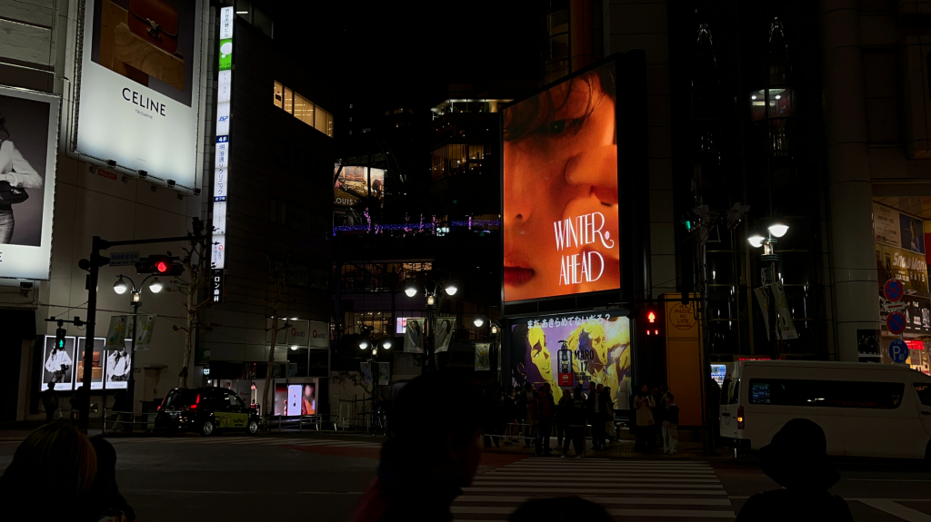 2일 빅히트뮤직에 따르면 뷔의 디지털 싱글 'Winter Ahead'(with PARK HYO SHIN) 뮤직비디오는 11월 25일부터 12월 1일까지 미국 뉴욕 타임스퀘어 디지털 크라운, 일본 도쿄의 시부야 타워 레코드 비전 등 대형 스크린을 통해 상영됐다.