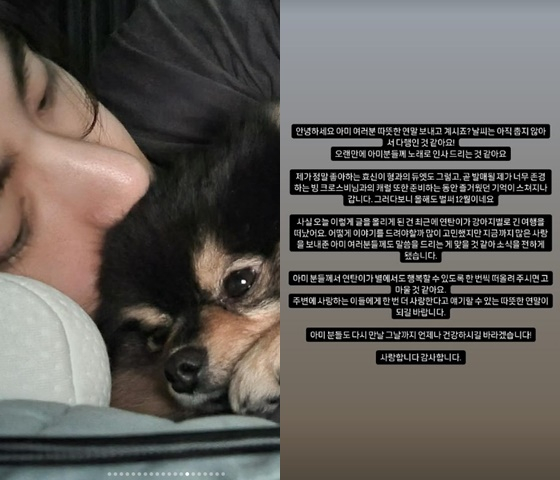 사실 오늘 이렇게 글을 올리게 된 건 최근에 연탄이가 강아지별로 긴 여행을 떠났어요. 어떻게 이야기를 드려야 할까 많이 고민했지만 지금까지 많은 사랑을 보내준 아미 여러분들께도 말씀을 드리는 게 맞을 것 같아 소식을 전하게 됐습니다.
