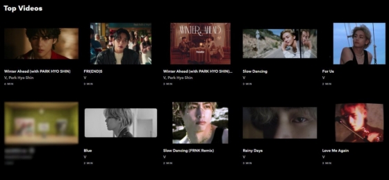 'Winter Ahead' 뮤직비디오가 공개되면서 뷔의 다른 솔로곡 뮤직비디오도 함께 조명 받은 것으로 분석된다. 앞서 뷔는 '프렌즈'로 K팝 아티스트 최초로 미국 '타이달 톱 비디오' 차트 1위에 오른 바 있다.