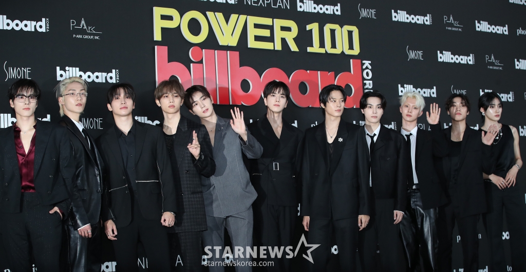 (서울=뉴스1) 권현진 기자 = 더보이즈 에릭(왼쪽부터)과 케빈, 상연, 선우, 현재, 영훈, 주연, 주학년, 큐, 제이콥, 뉴가 27일 서울 중구 신라호텔 영빈관에서 열린 ‘빌보드 케이 파워 100(Billboard K POWER 100)’ 행사에 참석해 포즈를 취하고 있다. 2024.8.27/뉴스1 Copyright (C) 뉴스1. All rights reserved. 무단 전재 및 재배포, AI학습 이용 금지. /사진=(서울=뉴스1) 권현진 기자